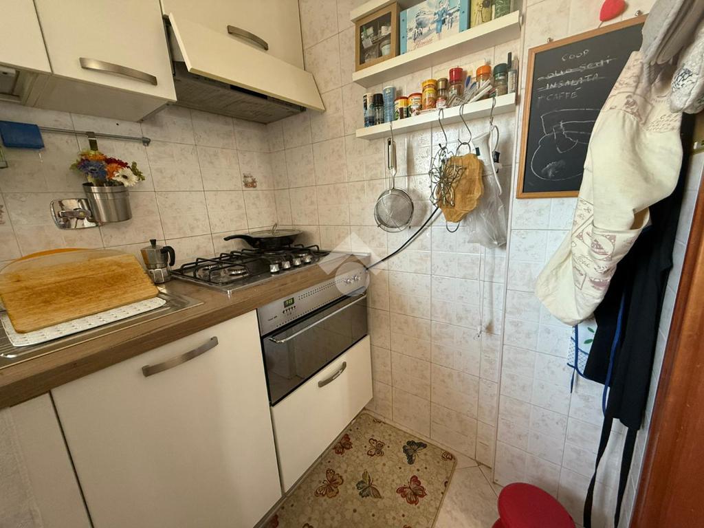 L'appartamento è stato recentemente ristrutturato. È composto da: una zona giorno con cucinino e tinello, due ampie camere da letto, un ripostiglio. Il bagno è finestrato e dotato di doccia. Completano la proprietà tre balconi e la cantina.