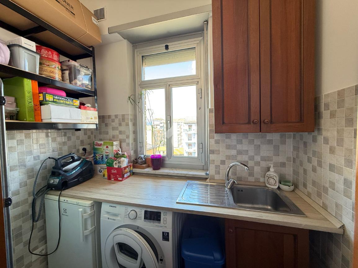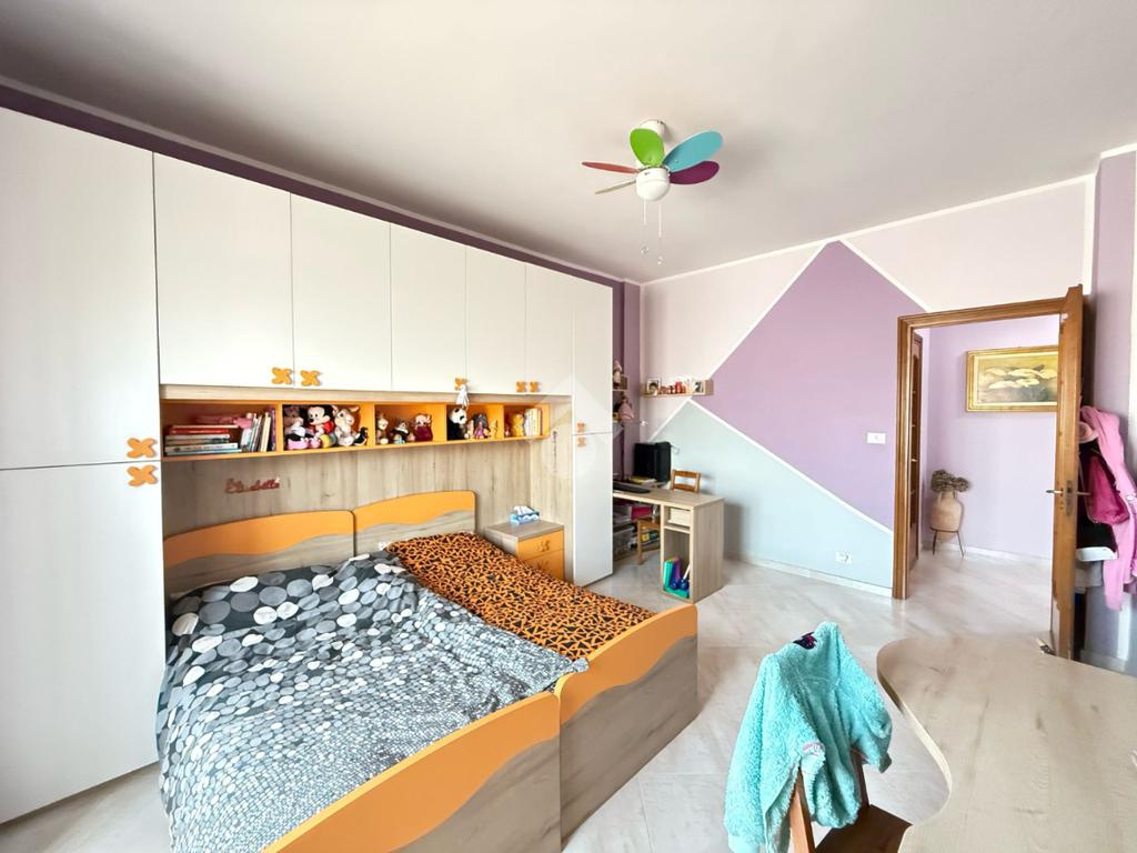 Questa soluzione abitativa offre cinque locali ben distribuiti: è composta da soggiorno, cucina abitabile, tre camere da letto, due ripostigli e due bagni. Completano la soluzione quattro balconi e una cantina di pertinenza.